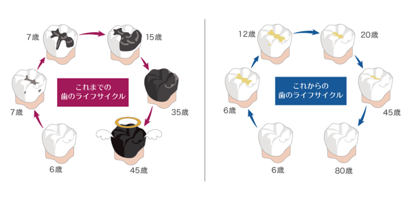 一度削った歯は二度と戻すことができません。「削ってつめる」治療を繰り返していると、いつか必ずあなたの歯は失われてしまいます。