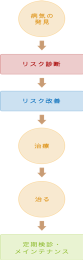 当院のMTMは、現状を把握し、虫歯や歯周病になるリスクを診断・コントロールし、症状を軽減させ、メインテナンスによる再発の予防と獲得した健康の維持を行います。