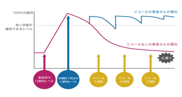 定期健診(リコール)を行い治療終了時から、どのようにそれを維持していくかが大切です