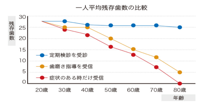 治療だけ・歯磨き指導だけでは歯は守りきれない事も分かってきました。あなたの歯を守るためには定期健診が有効です
